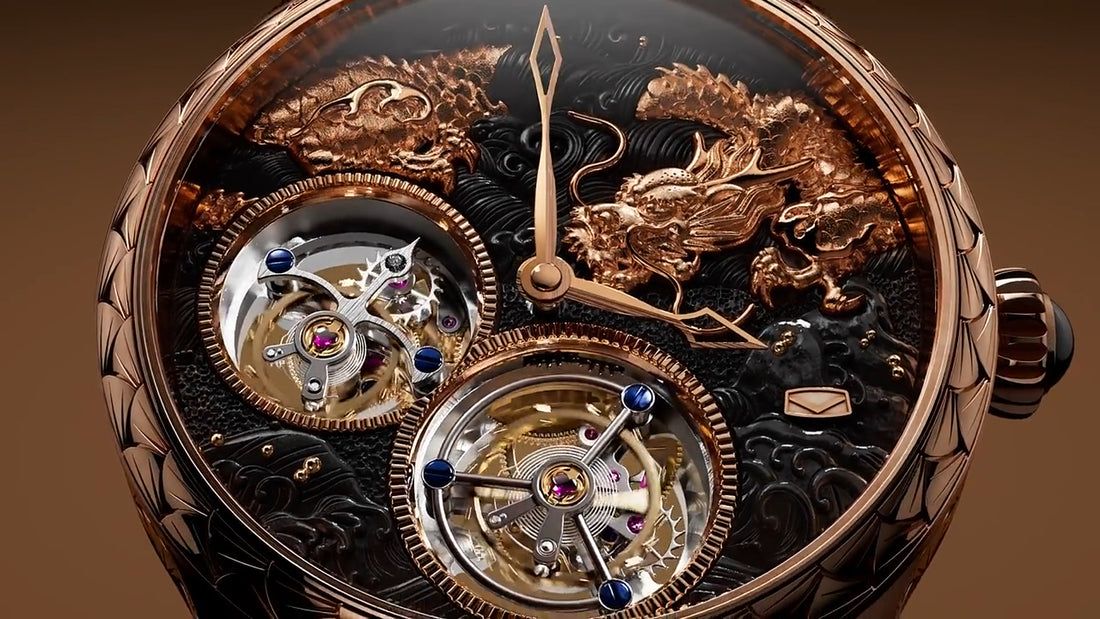 Double Tourbillon & Manually Carved Gold Watch