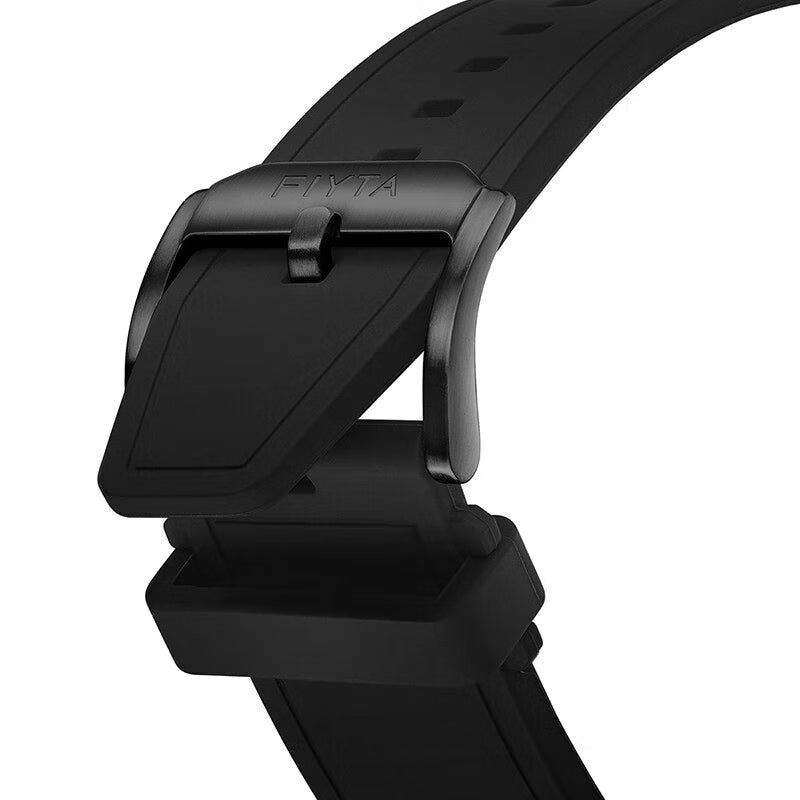 Black. Silicone rubber. Quick release: Remove strap from case without tool. Clasp: Pin buckle. Stainless steel clasp. (Additional strap: Black. Silicone rubber. Quick release: Remove strap from case without tool. Clasp of additional strap: Pin buckle. Stainless steel material.)