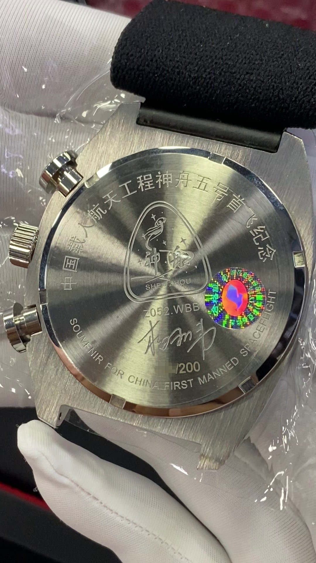 This model is a commercial version of the first Chinese space watch SZM112 that went to space in the Shenzhou 5 spacecraft on 2003 October 15.