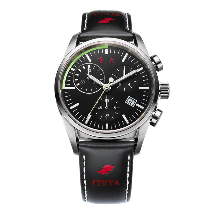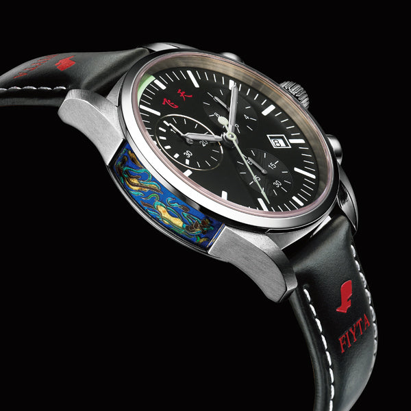 Titanium alloy. Diameter: 38.6 mm. Dial: Black. Crystal: Sapphire crystal. Crown: Signed with the FIYTA watch logo.