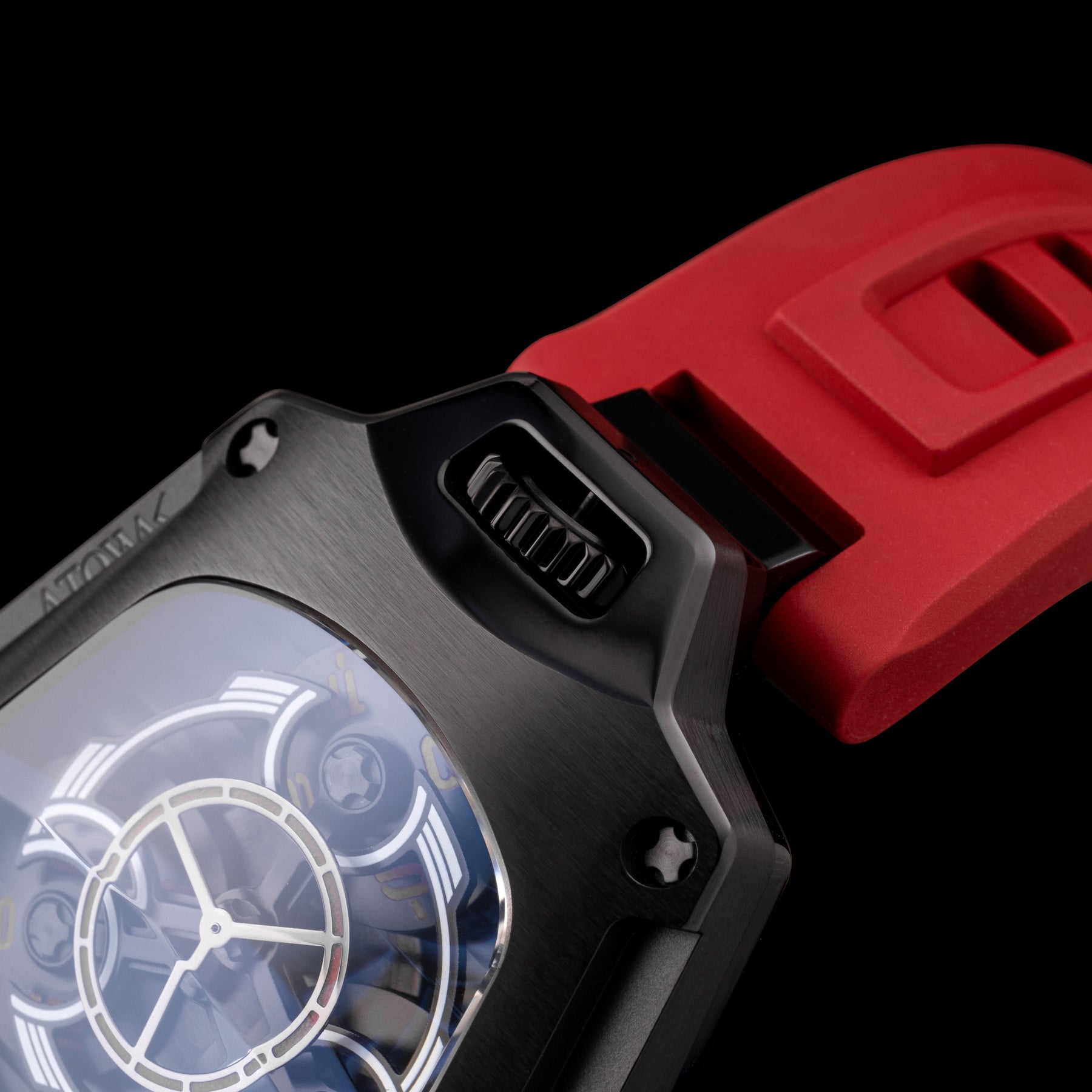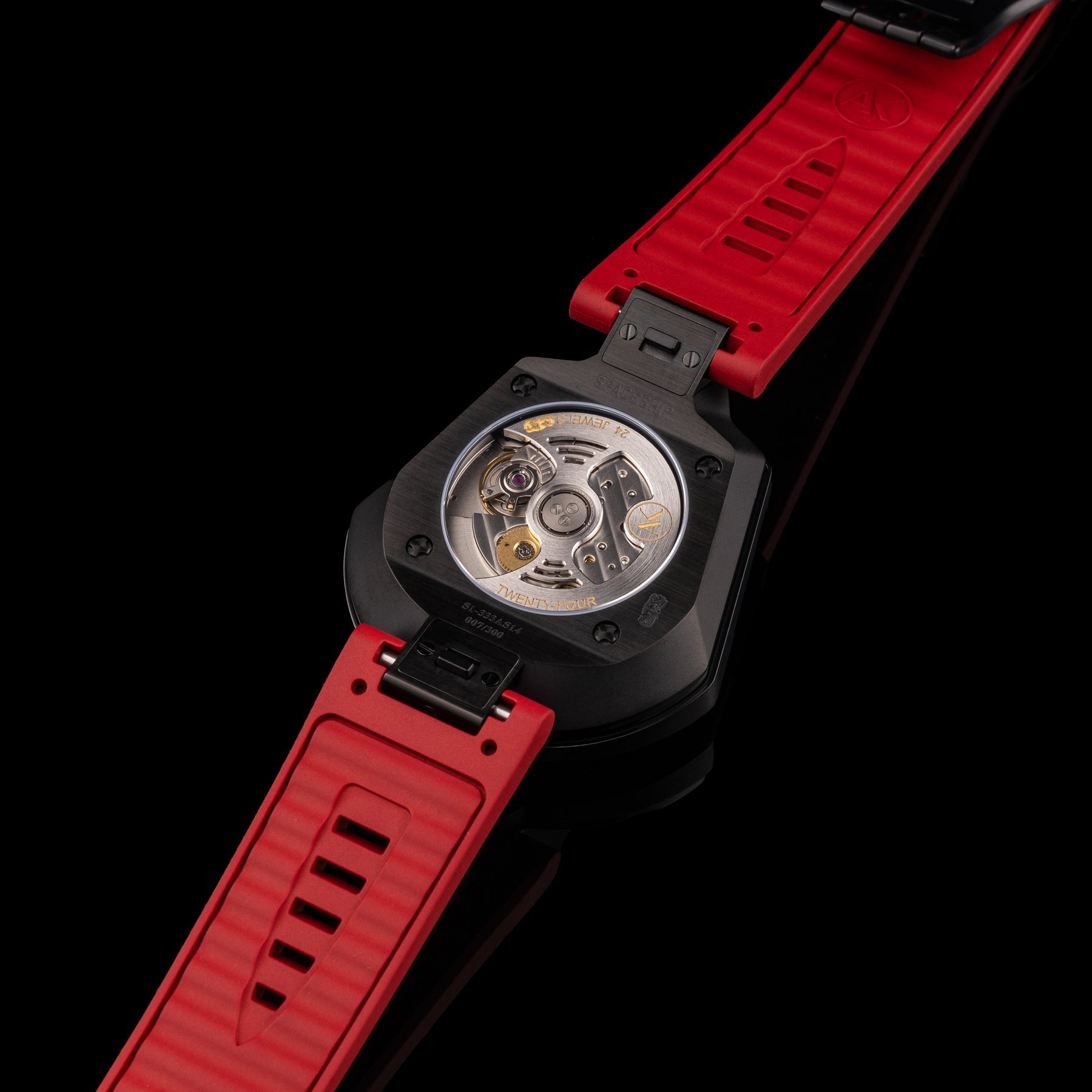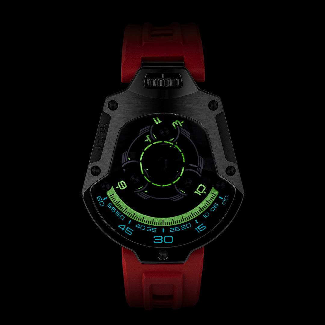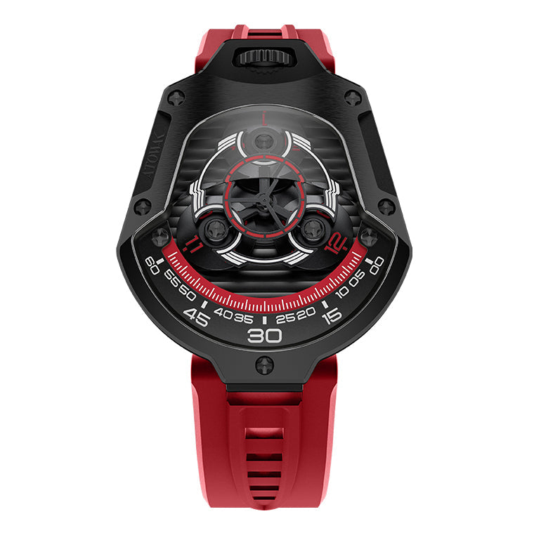 Brand: ATOWAK (巍刻). Reference: Spaceship. [Version: red strap, red curve on dial, black case, Arabic hour numerals. View other versions→]. Launch date: 2023-October-24. Limited 300 pieces.