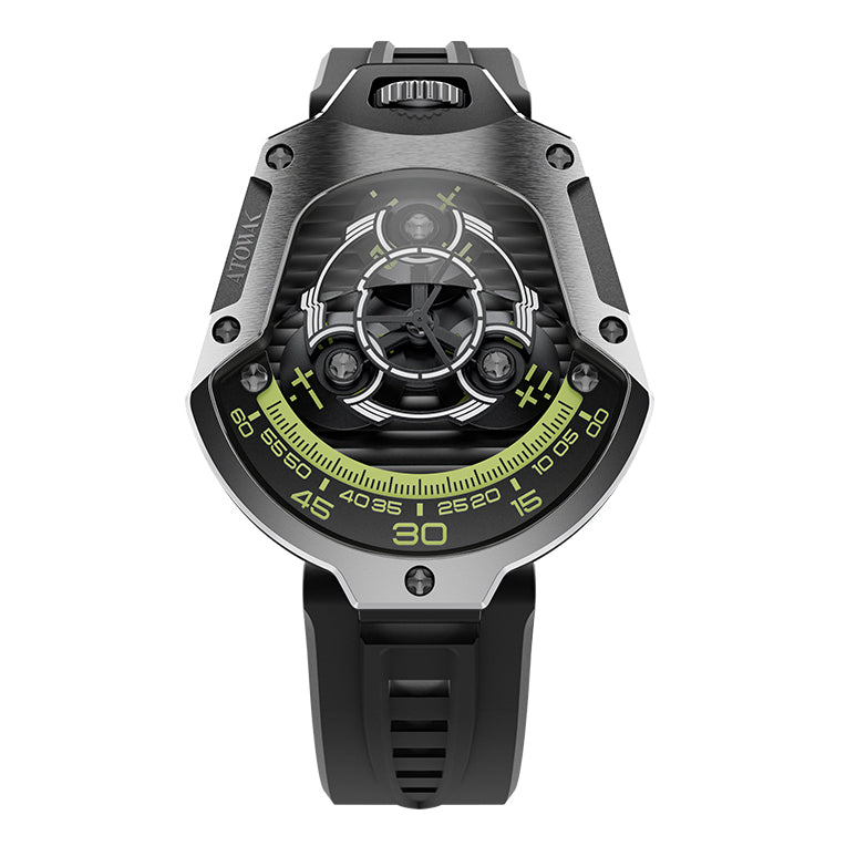 Brand: ATOWAK (巍刻). Reference: Spaceship. [Version: green numerals, black dial, silver color case, black strap, Chinese hour numerals. View other versions→]. Launch date: 2023-October-24. Limited 300 pieces.