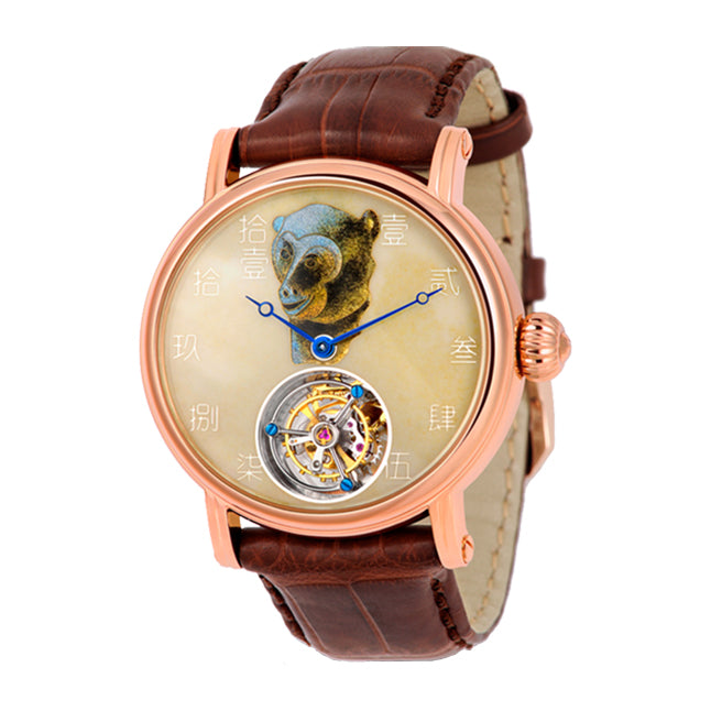 Sea-Gull reproduced the zodiac heads on watch dials with the cloisonné enamel techniques and combined with tourbillon module, gold filament are used to form the capitalized Chinese numerals. The twelve enamel dials are grouped by 3 in each group to showcase each of the four seasons, for example, the dials for Rat, Ox and Tiger represents Spring, and dials for Rabbit, Loong and snake represents Summer and so on. The watch case is made of 18K rose gold material, including the crown and clasp, paired with alligator leather bracelet.