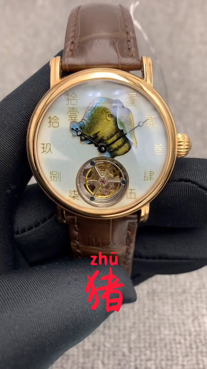 Sea-Gull reproduced the zodiac heads on watch dials with the cloisonné enamel techniques and combined with tourbillon module, gold filament are used to form the capitalized Chinese numerals. The twelve enamel dials are grouped by 3 in each group to showcase each of the four seasons, for example, the dials for Rat, Ox and Tiger represents Spring, and dials for Rabbit, Loong and snake represents Summer and so on. The watch case is made of 18K rose gold material, including the crown and clasp, paired with alligator leather bracelet.