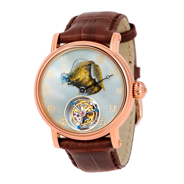Brand: Sea-Gull (海鷗). Reference: H618.862. [Version: Pig head on winter-themed dial; 18K rose gold case. View other versions →]. Limited 55 pieces.