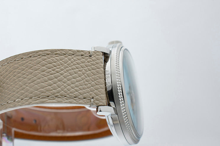 Khaki. Cowhide leather. Quick release: Remove strap from case without tool. Fit for case lug width: 20 mm. Clasp: Pin buckle. Stainless steel clasp.
