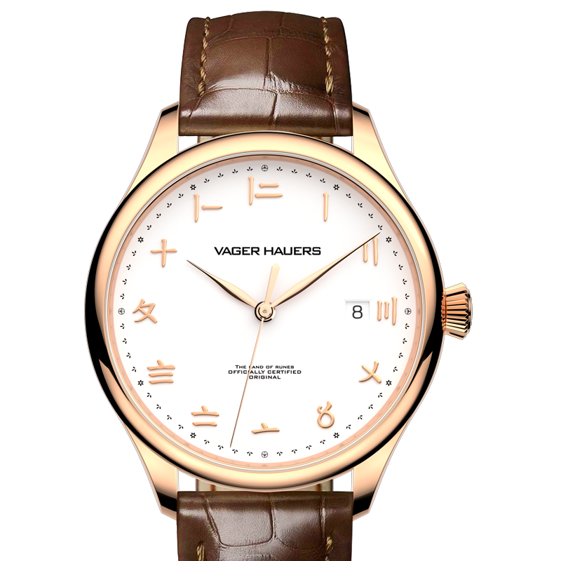 Brand: Vager Hauers (維傑豪兹). [Version: ETA 2892A2 movement; Rose gold color case; White dial WITH date window. View other versions →]. Launch date: 2022-Month?-Date? Summer. Limited 100 pieces.