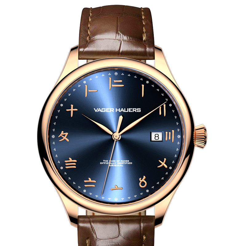 Brand: Vager Hauers (維傑豪兹). [Version: ETA 2892A2 movement; Rose gold color case; Sunburst blue dial WITH date window. View other versions →]. Launch date: 2022-Month?-Date? Summer. Limited 100 pieces.