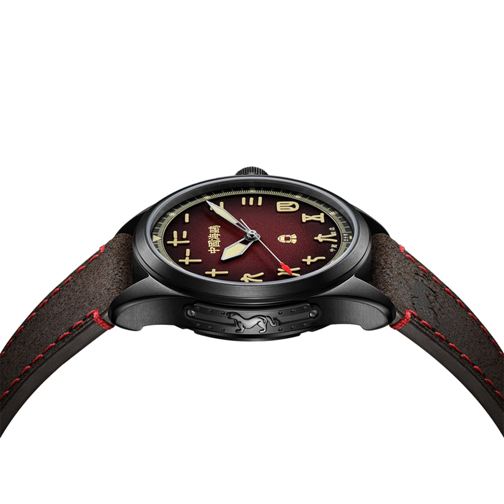 This model blends traditional Chinese elements with modern design. It features small seal script as watch indices, giving it a unique and sophisticated look. At 6 o'clock on the dial, you'll find the Qin armor, adding an historical touch to the watch. The Chinese character "秦" in the form of small seal script was engraved on the case back, further emphasizing its Chinese heritage.