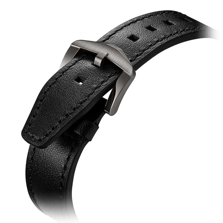 Black. Cowhide leather. Quick release: Remove strap from case without tool. Fit for case lug width: 20 mm. Clasp: Pin buckle. Grade 5 titanium alloy clasp. (Additional strap: Black. Polyester fiber 42214 front, same material for spacecraft parachute, leather back. Quick release: Remove strap from case without tool. Clasp of additional strap: Pin buckle.)