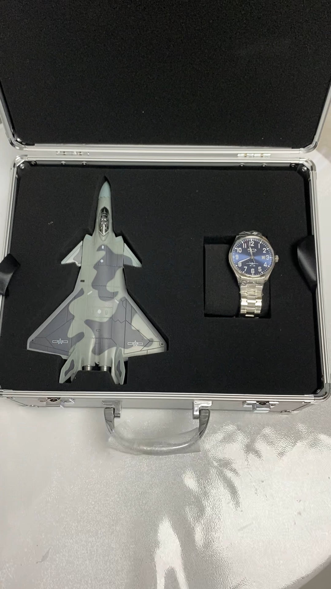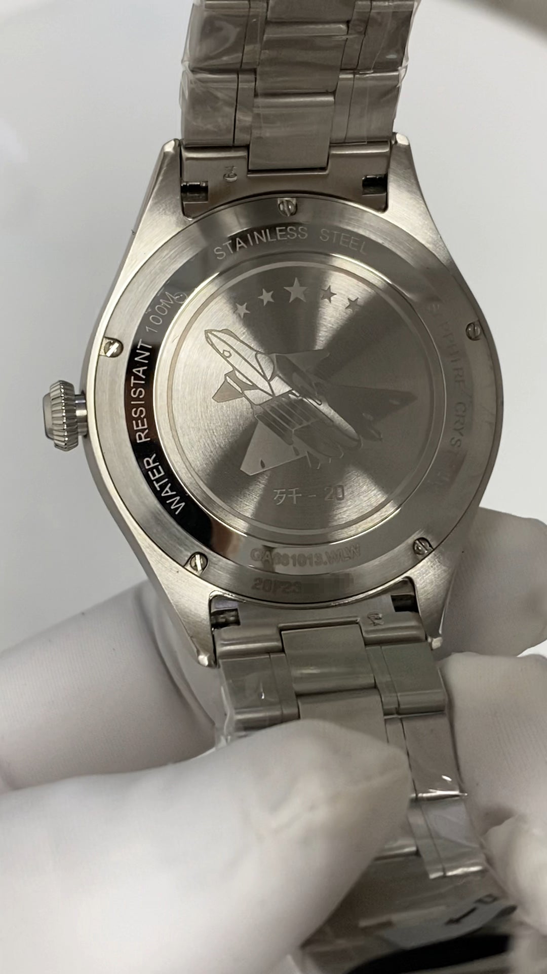 Pattern of the J-20 (歼-20) fighter jet on dial and case back.