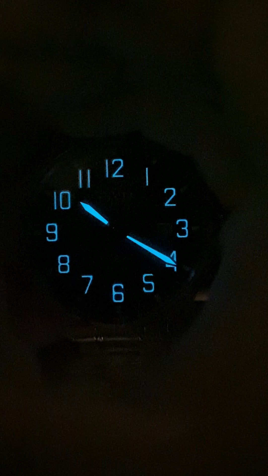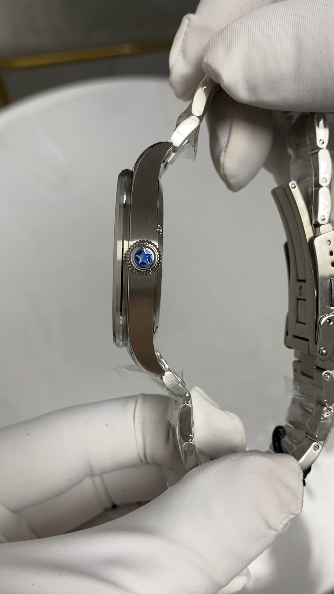 Stainless steel. Diameter: 42 mm. Thickness: 9.9 mm. Lug width: 20 mm. Water resistance: 100 meters. Luminescence: Blue lume on hour hand, minute hand and numerals. Dial: Blue. Sunburst finish. Applied numerals. Crystal: Sapphire crystal. Flat. Has anti-reflective coating. Case back: Fixed with screws. Not transparent. Stainless steel case back. Crown: Screw-down. Stainless steel crown. Signed with the five-pointed star.