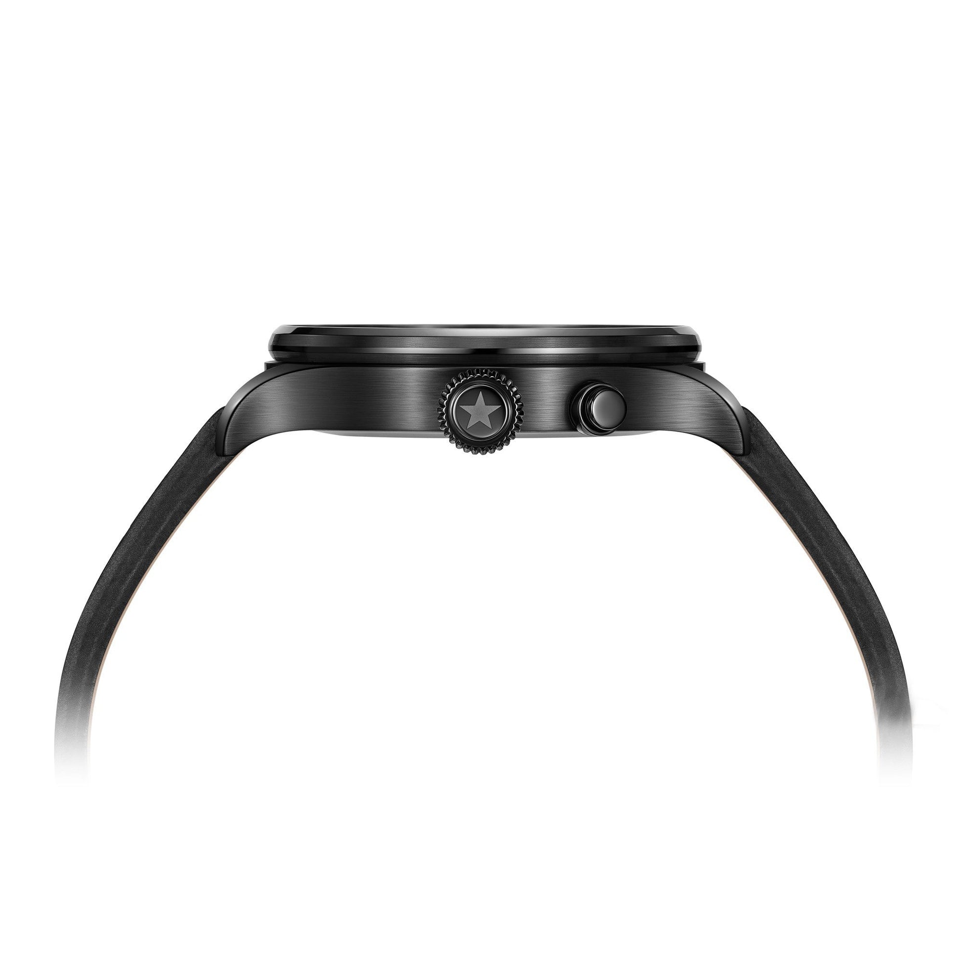 Stainless steel. Diameter: 42 mm. Thickness: 12 mm. Lug width: 20 mm. Water resistance: 50 meters. Luminescence: Green lume on hour hand, minute hand, all 3 small hands, numerals and hour markers. Dial: Black. Sunburst finish. Crystal: Sapphire crystal. Case back: Fixed with screws. Not transparent. Stainless steel case back. Crown: Push-pull. Signed with the five-pointed star.