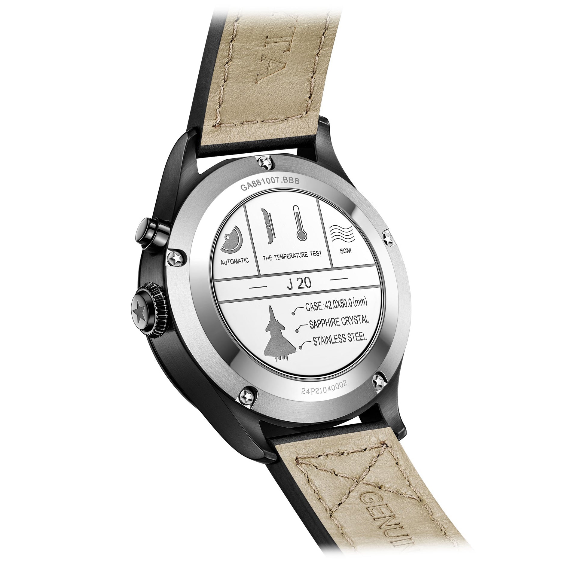 Pattern of the J-20 (歼-20) fighter jet on dial and case back.