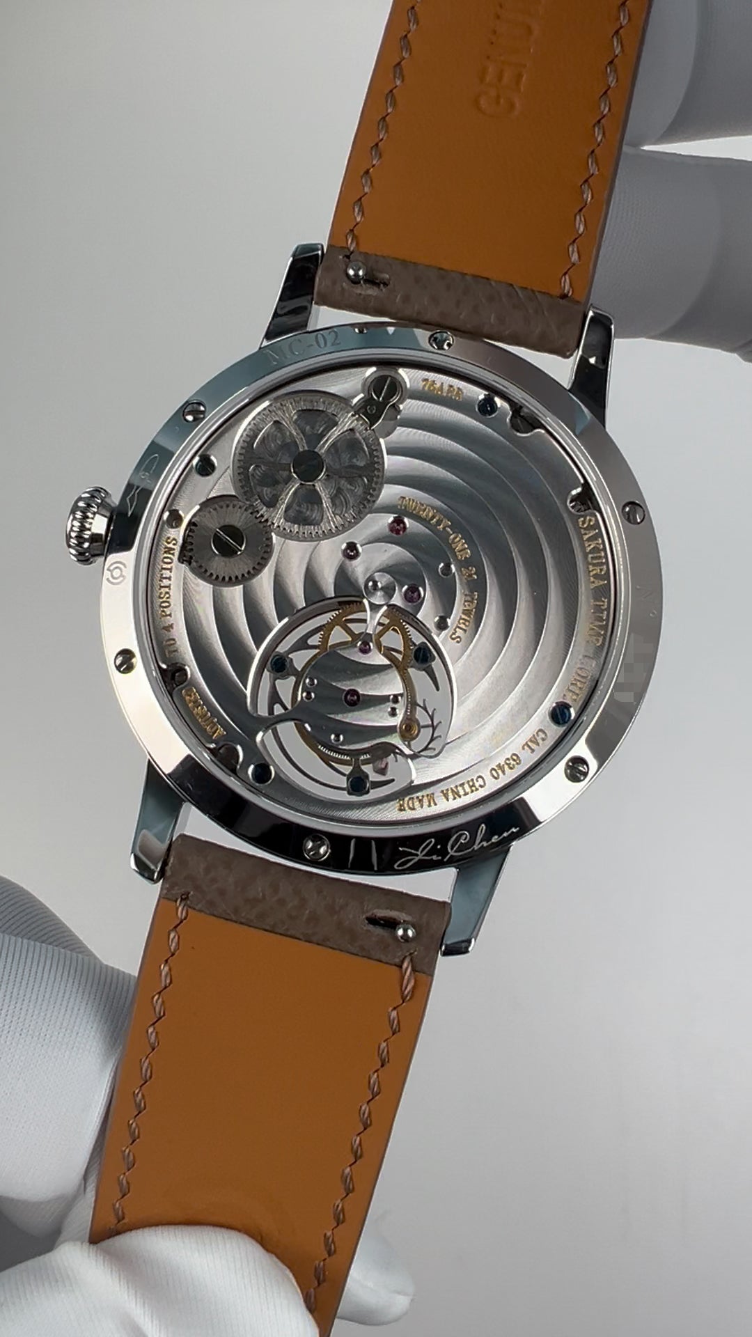 Mechanical, manual-winding. Tourbillon. China Made. Caliber: Sakura 6340. Functions: Hour, minute (Hour and minute hands at 12 o'clock. The tourbillon module turns 60 seconds per round which can be used as the seconds hand.). Jewels: 21. Frequency: 28800 vph. Power reserve: Around 40 hours.