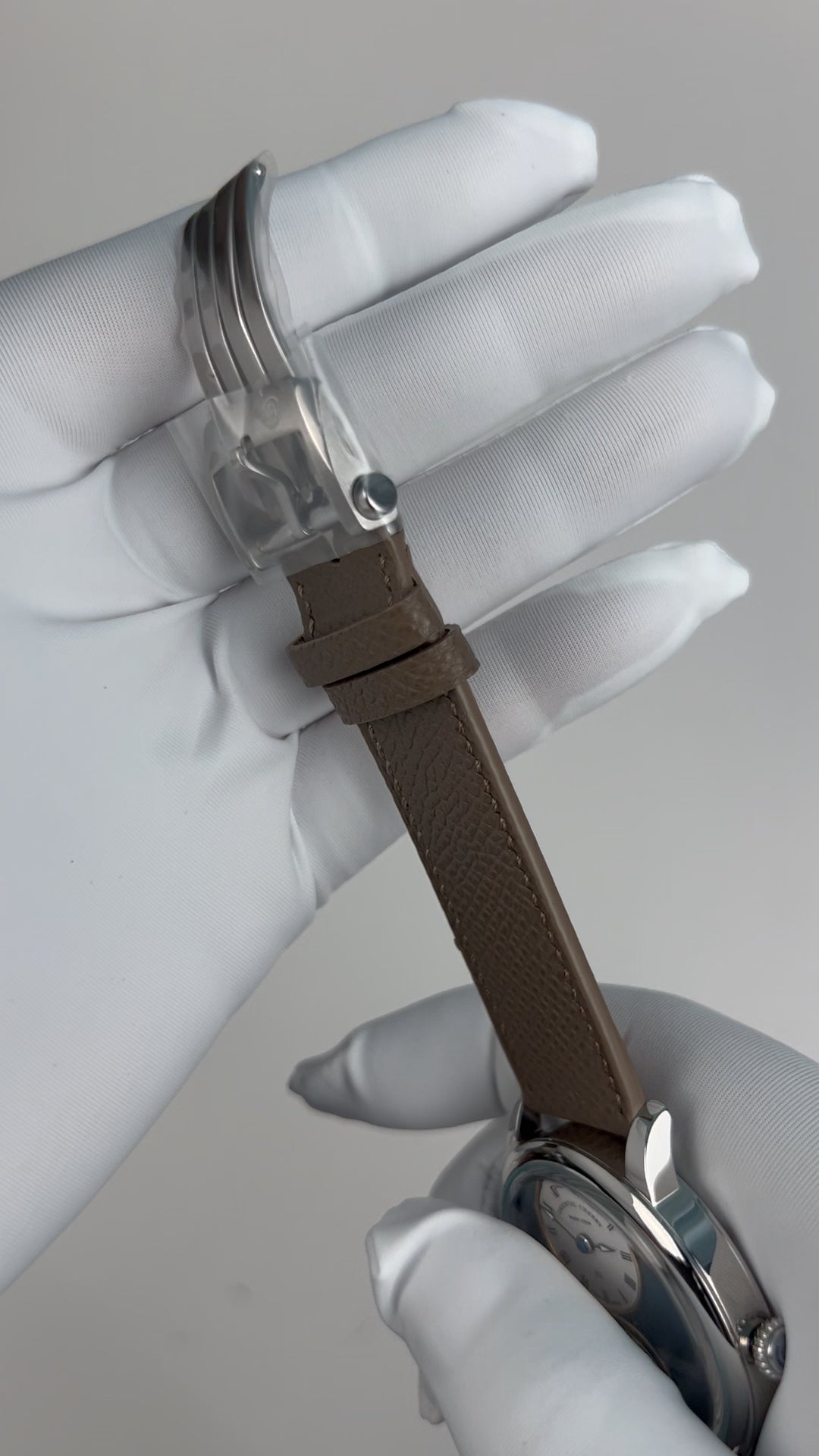Khaki. Cowhide leather. Quick release: Remove strap from case without tool. Fit for case lug width: 20 mm. Fit for clasp lug width: 18 mm. Clasp: Pin buckle & fold-over clasp. Stainless steel clasp.