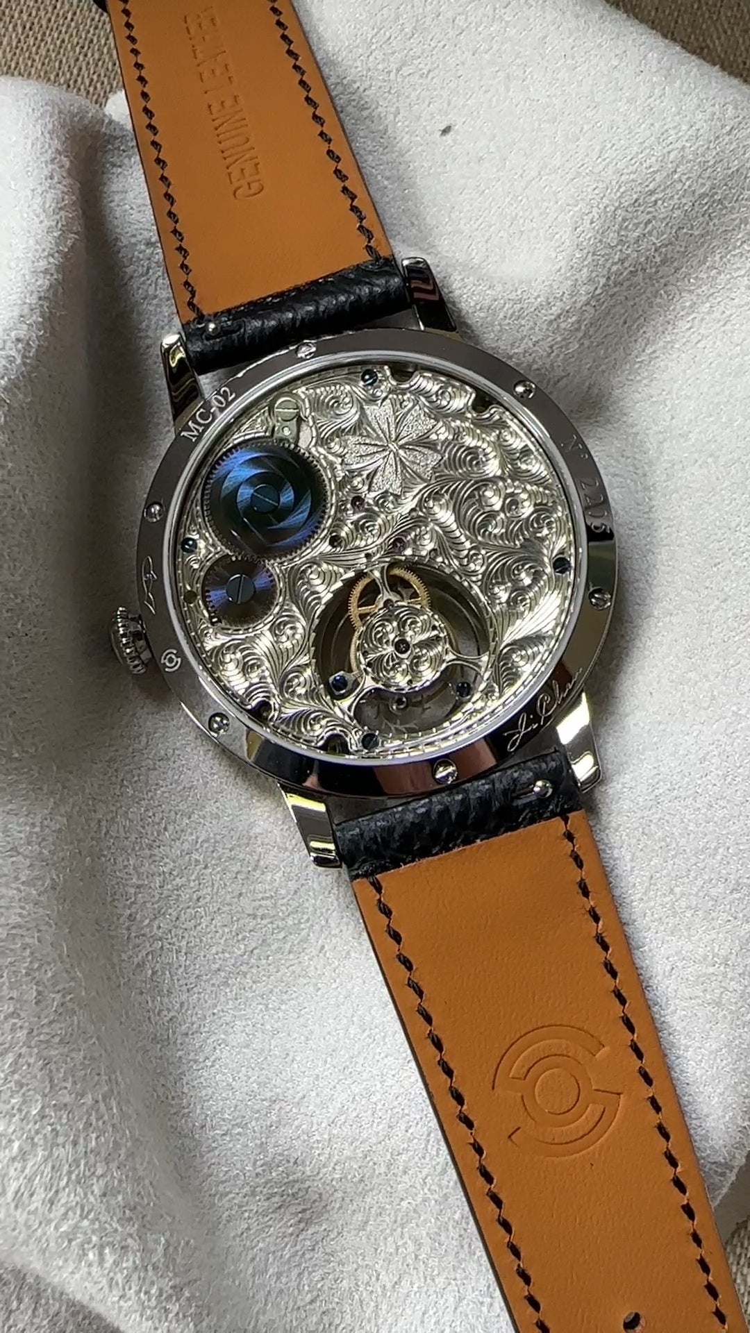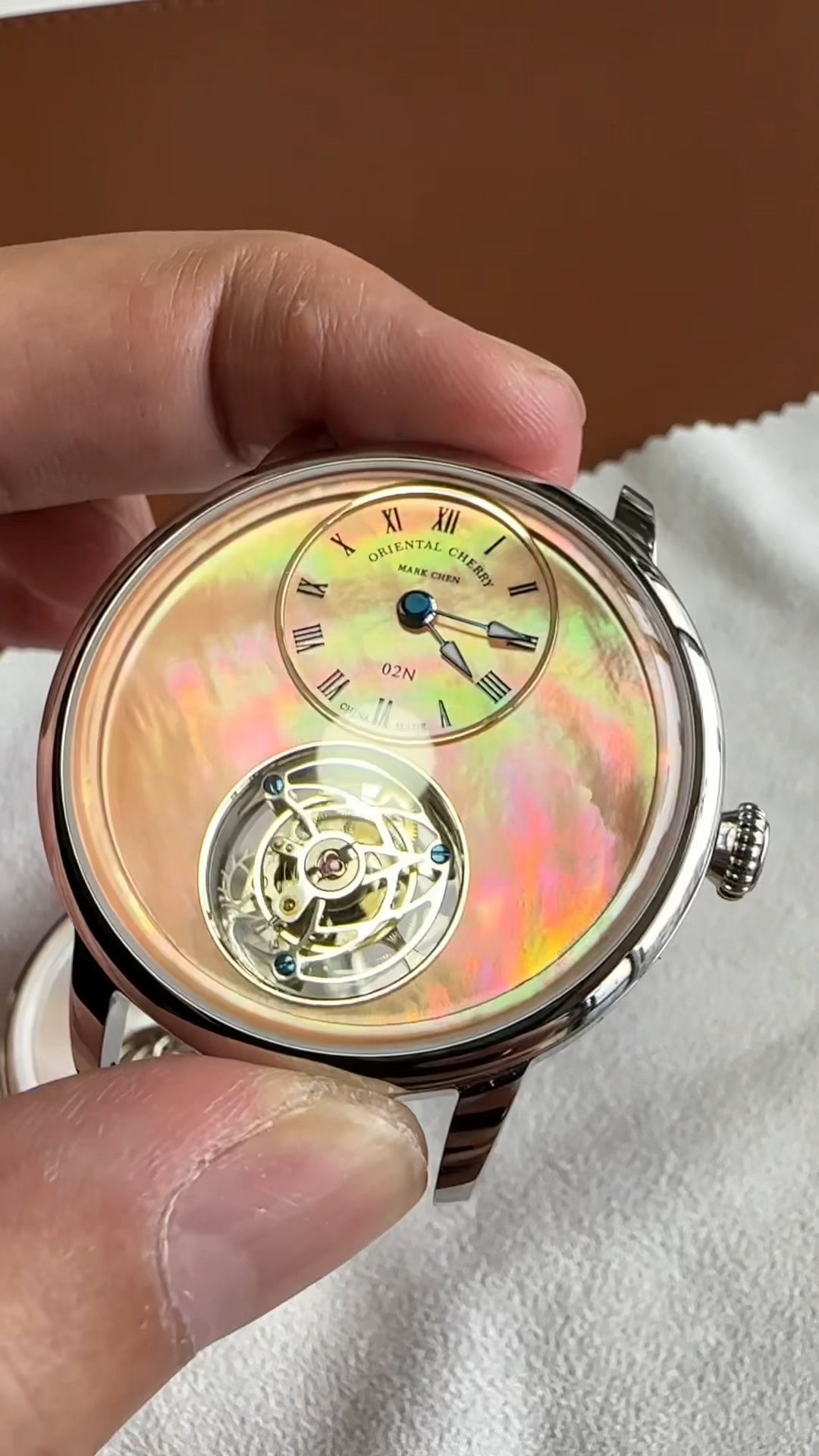 Mark Chen 02N · mother-of-pearl dial · engraved back