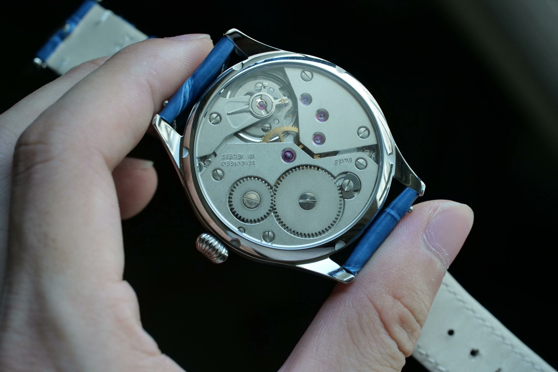 Bear Watch II, mother-of-pearl ETA 6497 movementBear Watch II, mother-of-pearl ETA 6497 movementMother-of-pearl dial,Polar bear theme, baked purple hands40mm diameter, very rare6497s are generally 41mm and aboveBlue alligator leather strap(Those who know the value of this strap will know)