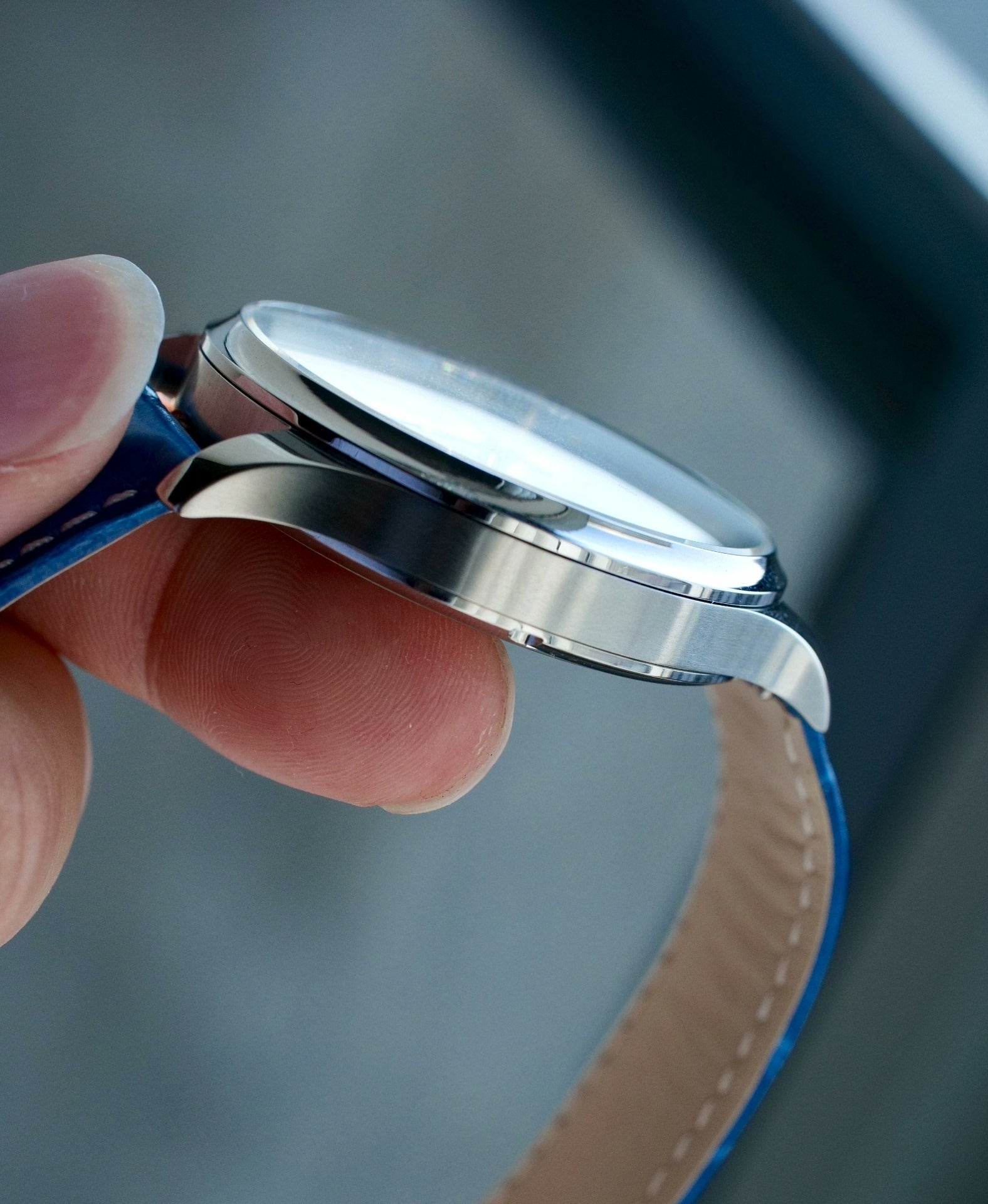 Blue. Leather. Quick release: Remove strap from case without tool. Clasp: Pin buckle. Stainless steel clasp.