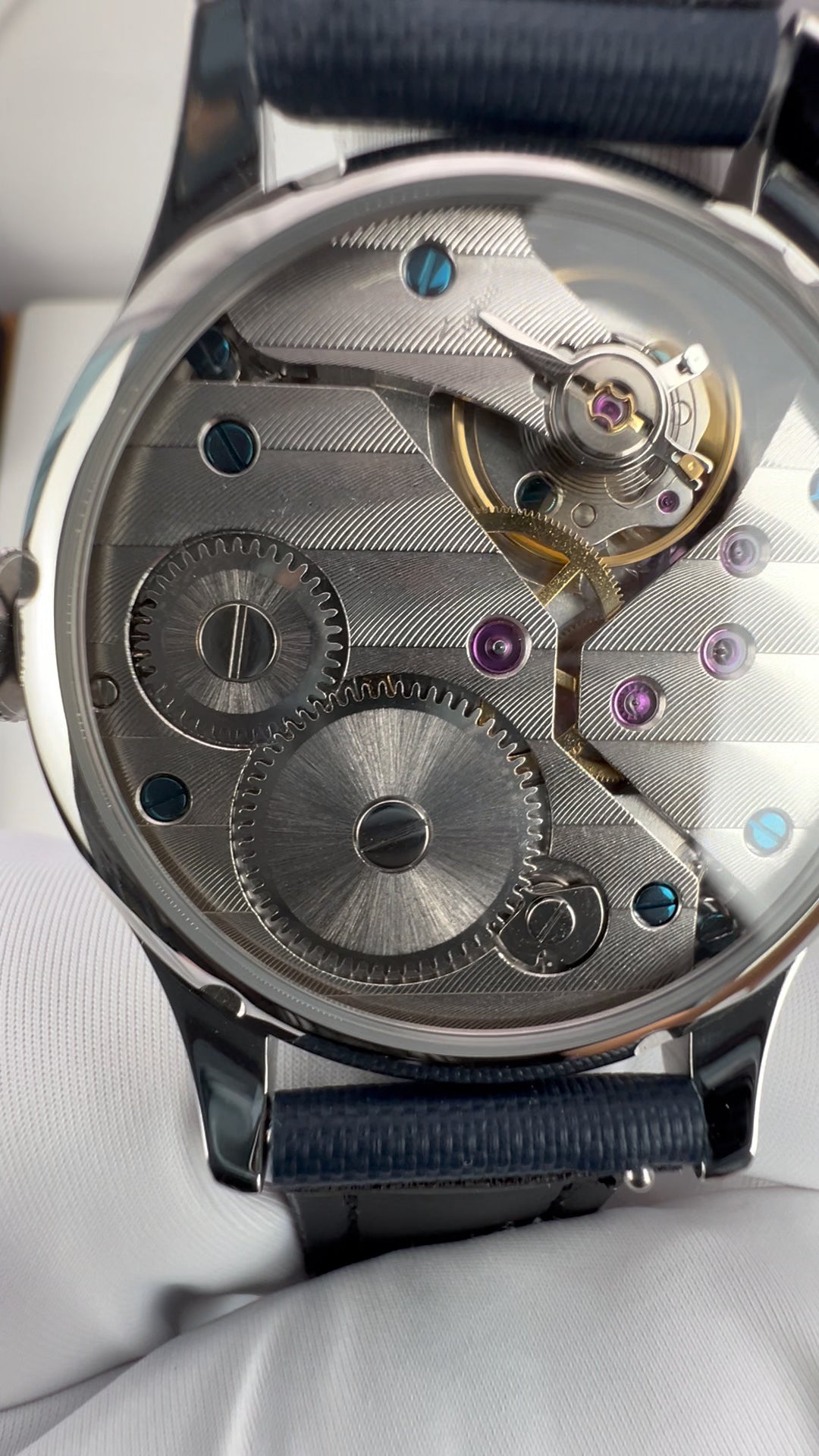 Mechanical, self-winding. China Made. Caliber: Sea-Gull ST36. Functions: Hour, minute, second. No hacking (Seconds hand does NOT stop when crown is pulled out). Jewels: 17. Frequency: 21600 vph. Power reserve: Around 46 hours.