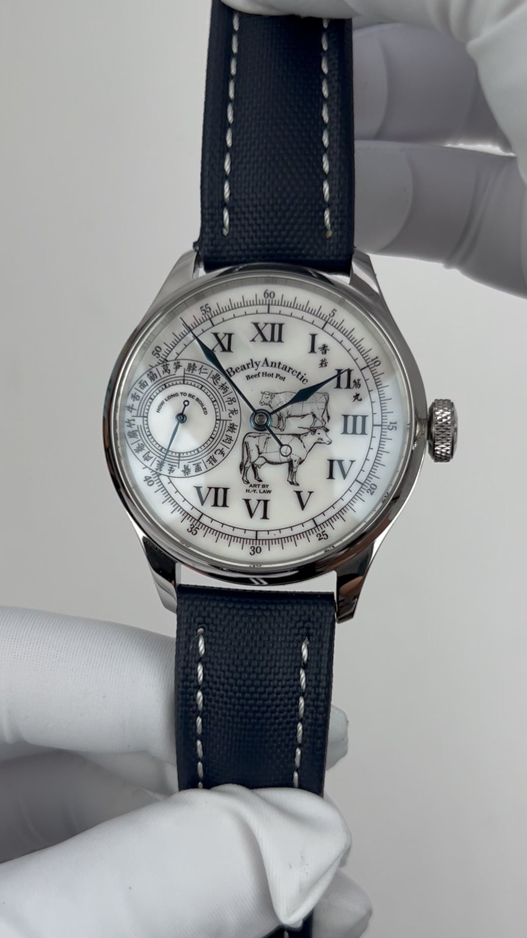 Brand: Bearly Antarctic (熊表). [Version: Bigger subdial at 9 o'clock; Thermal-bluing hands; Sea-Gull ST36 movement. View other versions →]. Launch date: 2024-November-16.