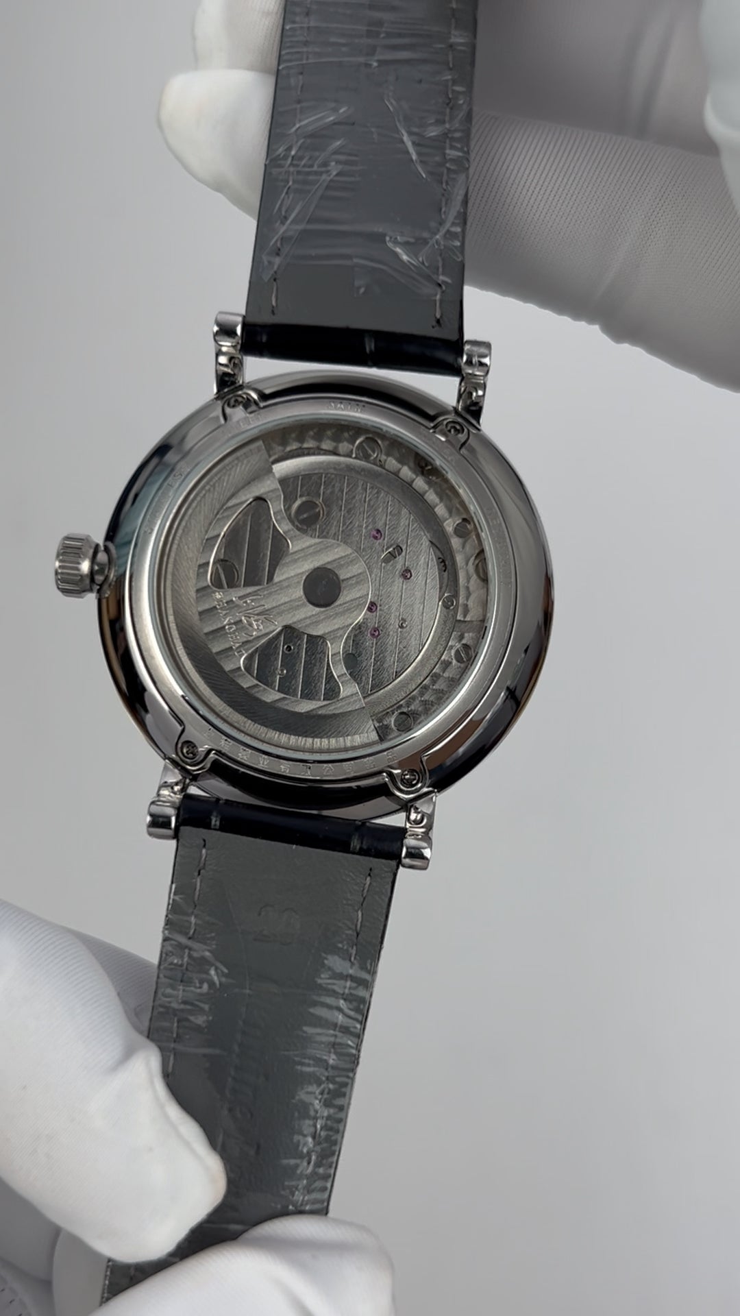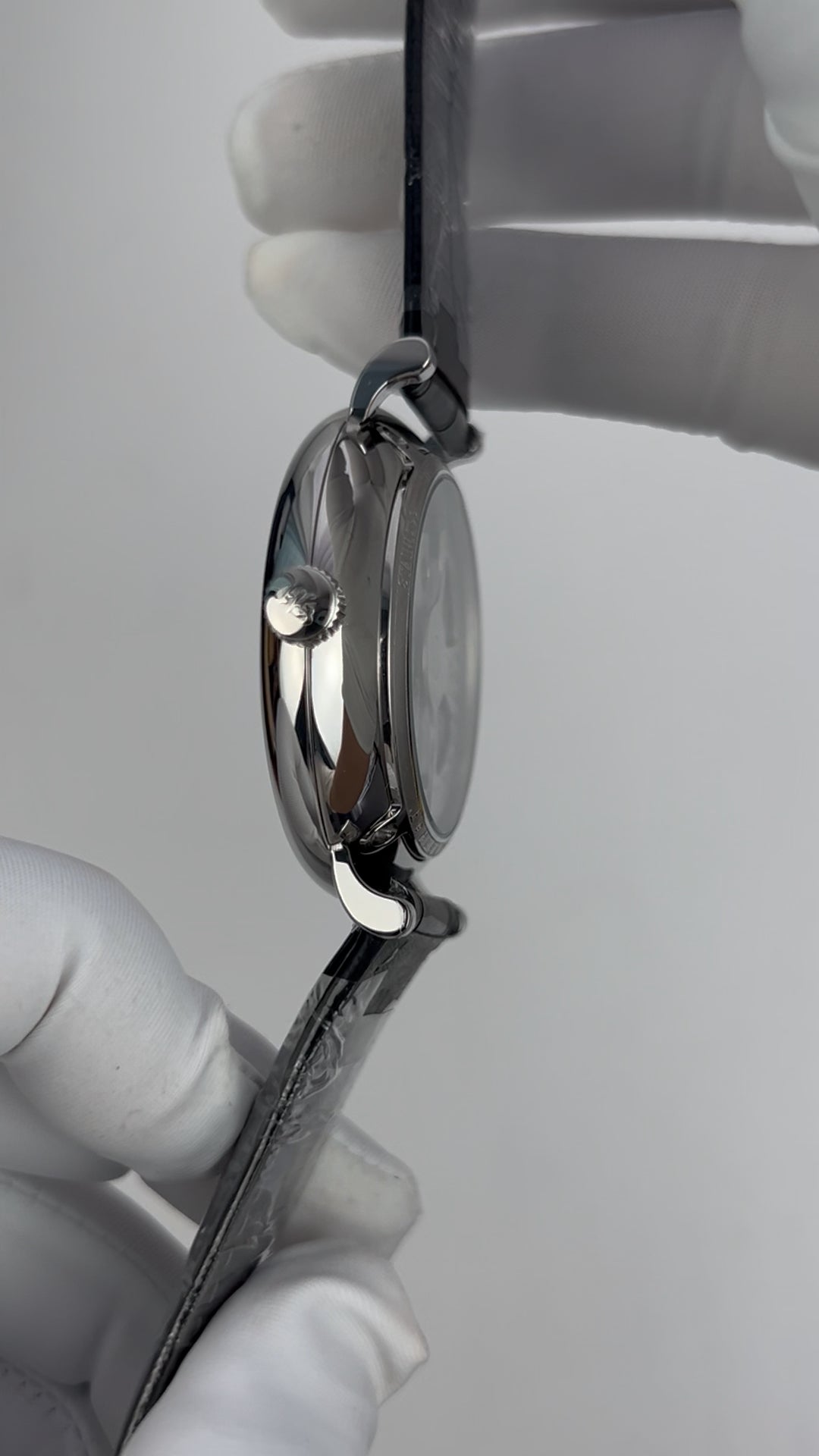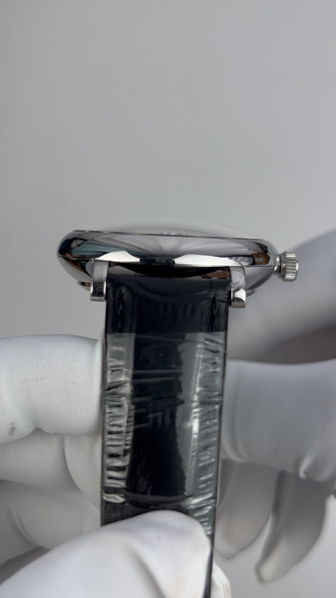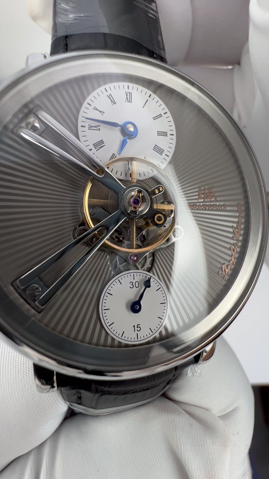 Mechanical, self-winding. China Made. Caliber: Shanghai F28. Functions: Hour, minute, second (Hour and minute subidal at 12 o'clock. 30-second small hand at 6 o'clock.). No hacking (Seconds hand does NOT stop when crown is pulled out). Jewels: 34. Frequency: 21600 vph. Power reserve: Around 40 hours.