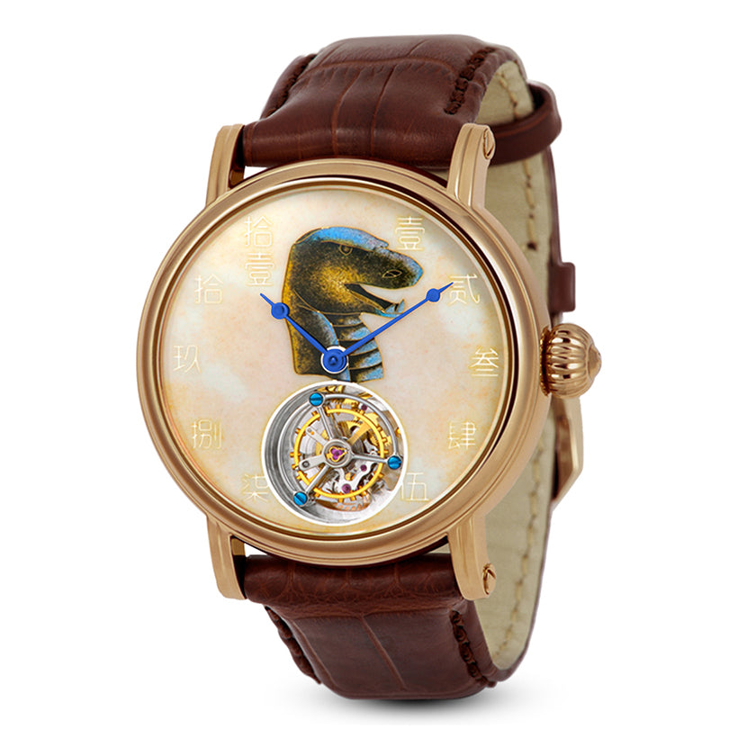 Sea-Gull reproduced the zodiac heads on watch dials with the cloisonné enamel techniques and combined with tourbillon module, gold filament are used to form the capitalized Chinese numerals. The twelve enamel dials are grouped by 3 in each group to showcase each of the four seasons, for example, the dials for Rat, Ox and Tiger represents Spring, and dials for Rabbit, Loong and snake represents Summer and so on. The bronze case versions of the twelve watches are launched in 2025.