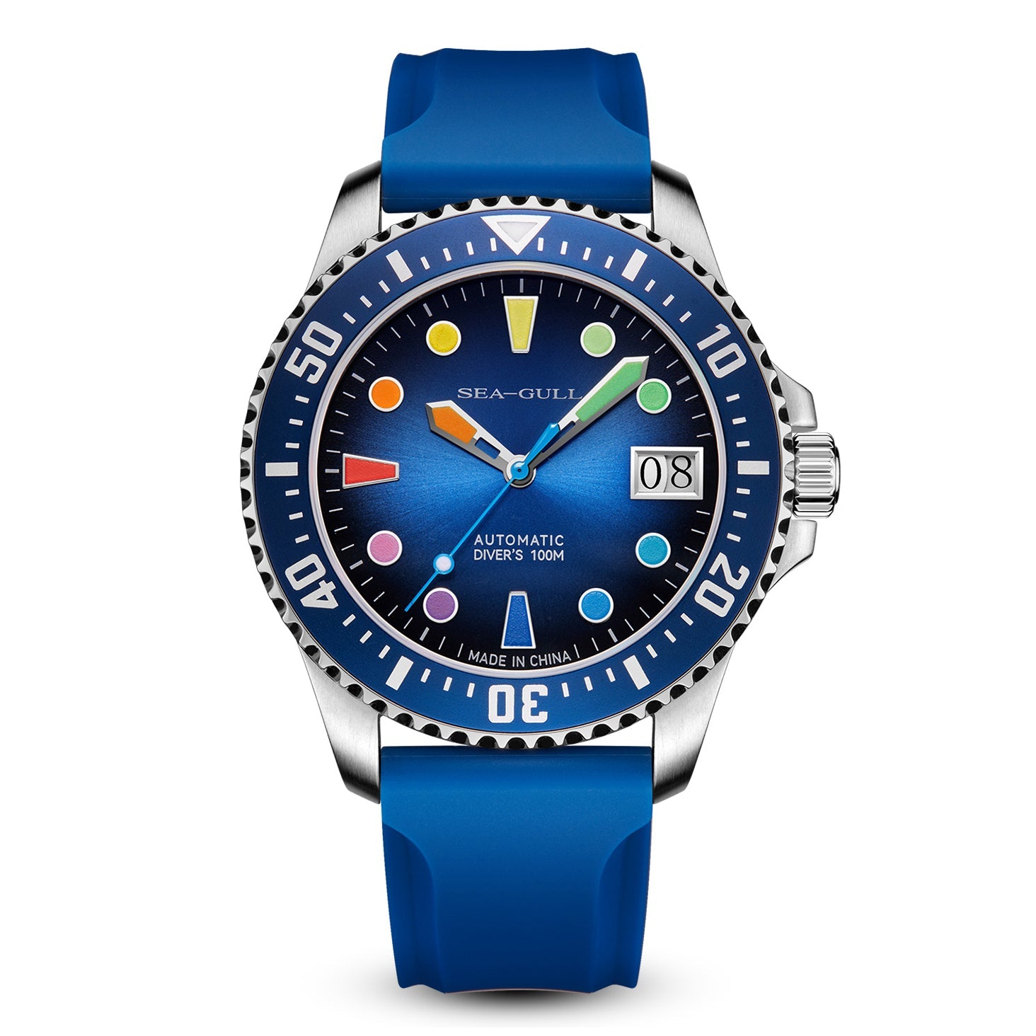 Mechanical, self-winding. China Made. Caliber: Sea-Gull ST2140. Jewels: 28. Frequency: 28800 vph.