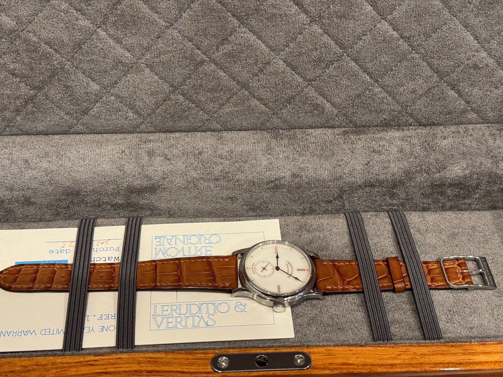维里塔斯玉衡,紫针,316版本,99新。机芯打磨绝美,佩戴次数很少,原装表带全新,全套,编号04。