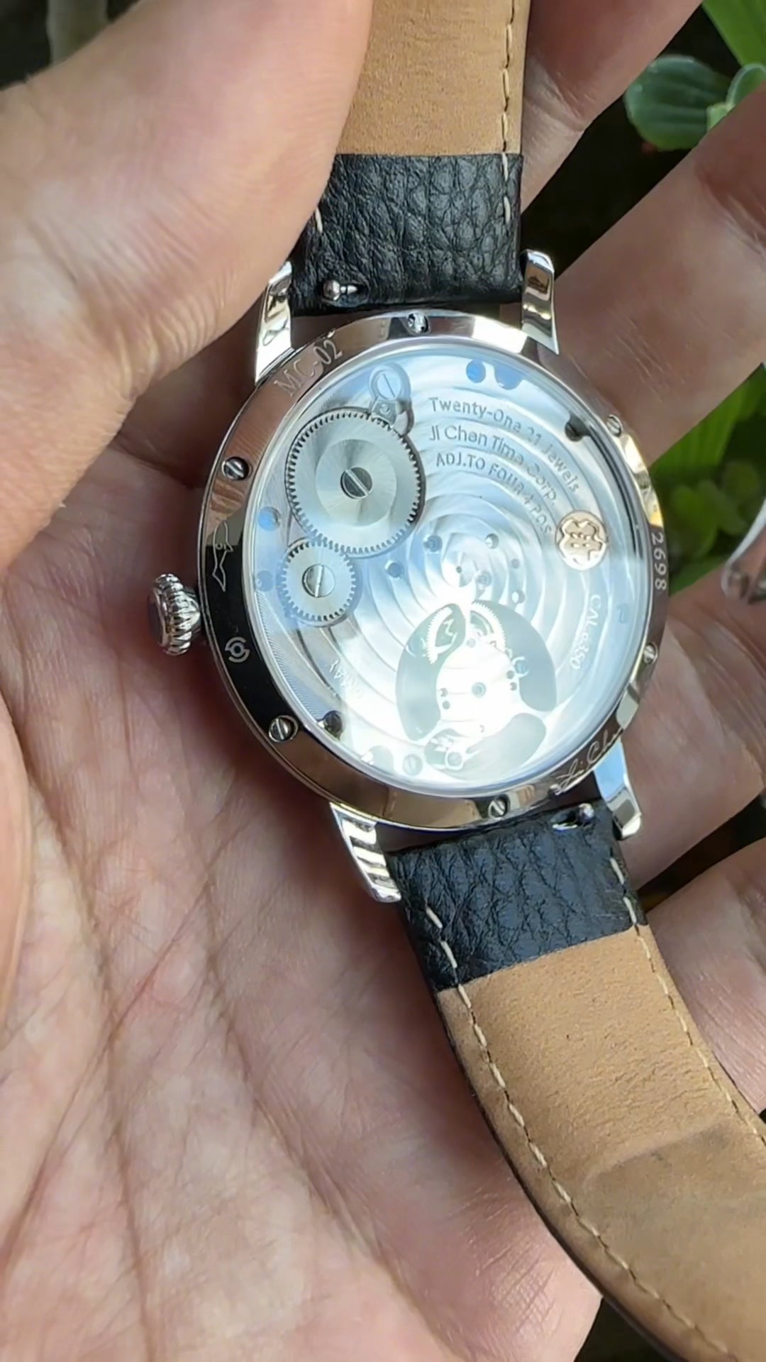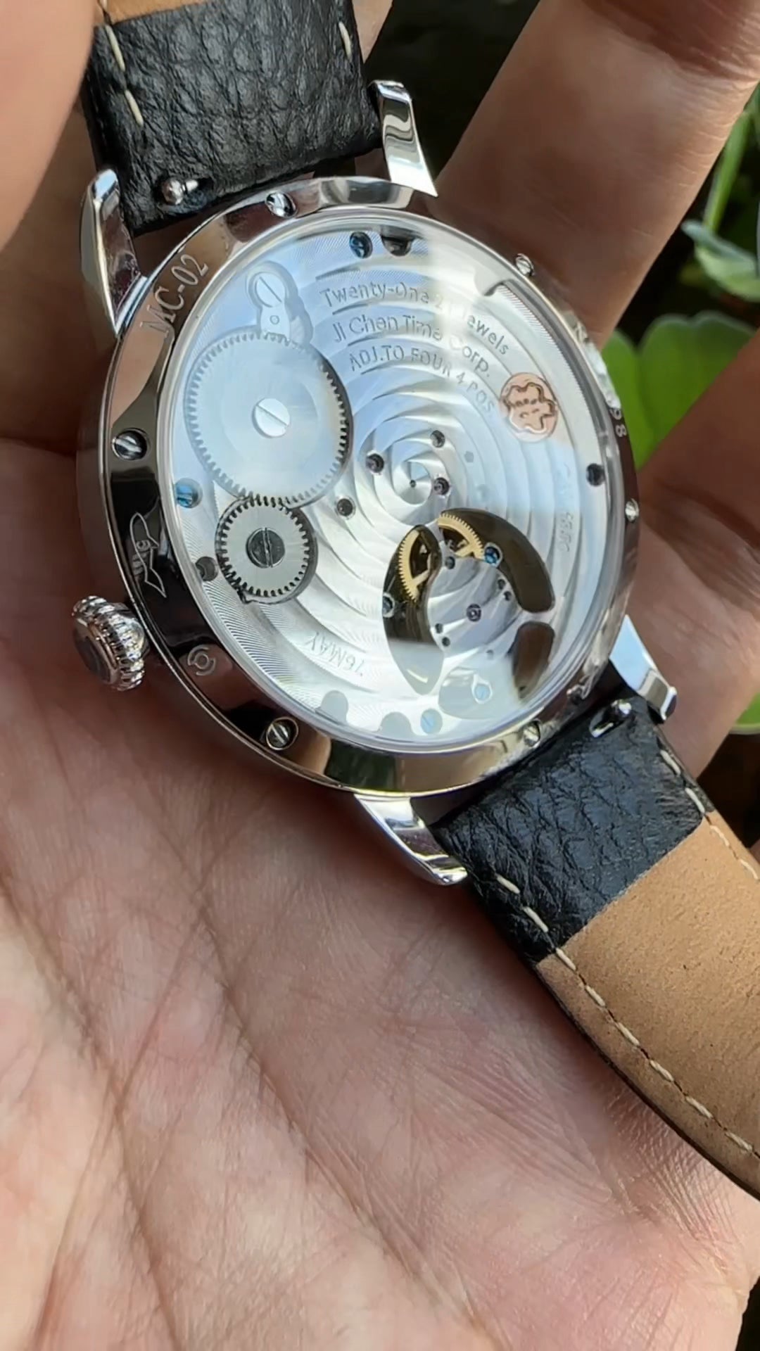 Mechanical, manual-winding. China Made. Caliber: Ji Chen Time Corp. (Sakura) 6350. Functions: Hour, minute. Jewels: 21. Frequency: 28800 vph.