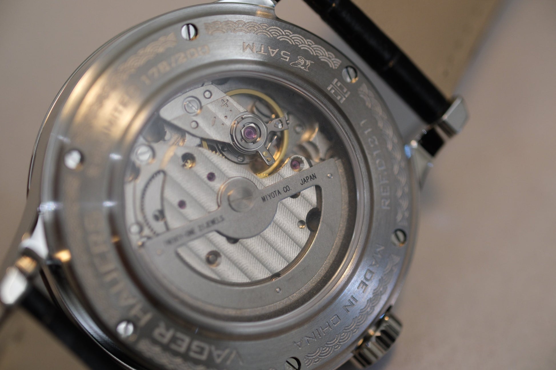 Mechanical, self-winding. Japan Made. Caliber: Miyota 8219. Functions: Hour, minute, second, date, 24 hour (Central hour and minute hands, small seconds hand at 5 o'clock; Date aperture at 2 o'clock; 24 hour subdial at 9 o'clock). Quick date setting. Gradual date change. No hacking (Seconds hand does NOT stop when crown is pulled out). Precision: -5/+5 ~ -30/+30 sec/day. Jewels: 21. Frequency: 21600 vph. Power reserve: Around 38 hours.