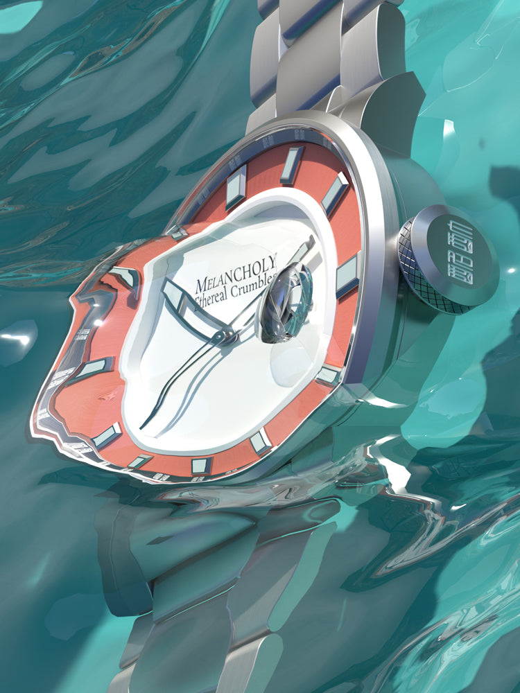 酩酊 - Drunk. Position: on chapter ring; on crown; on case back.