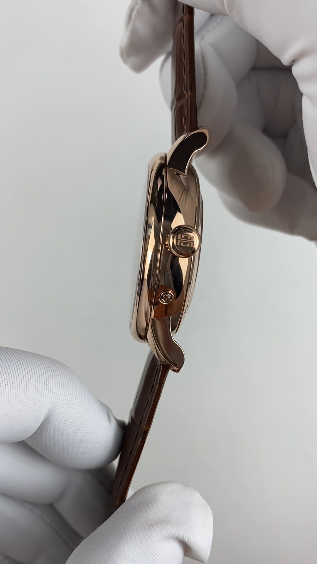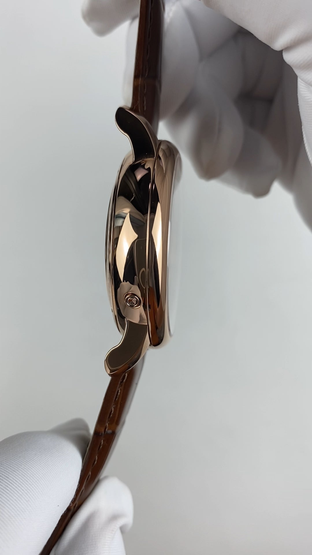 rose gold color case, white dial