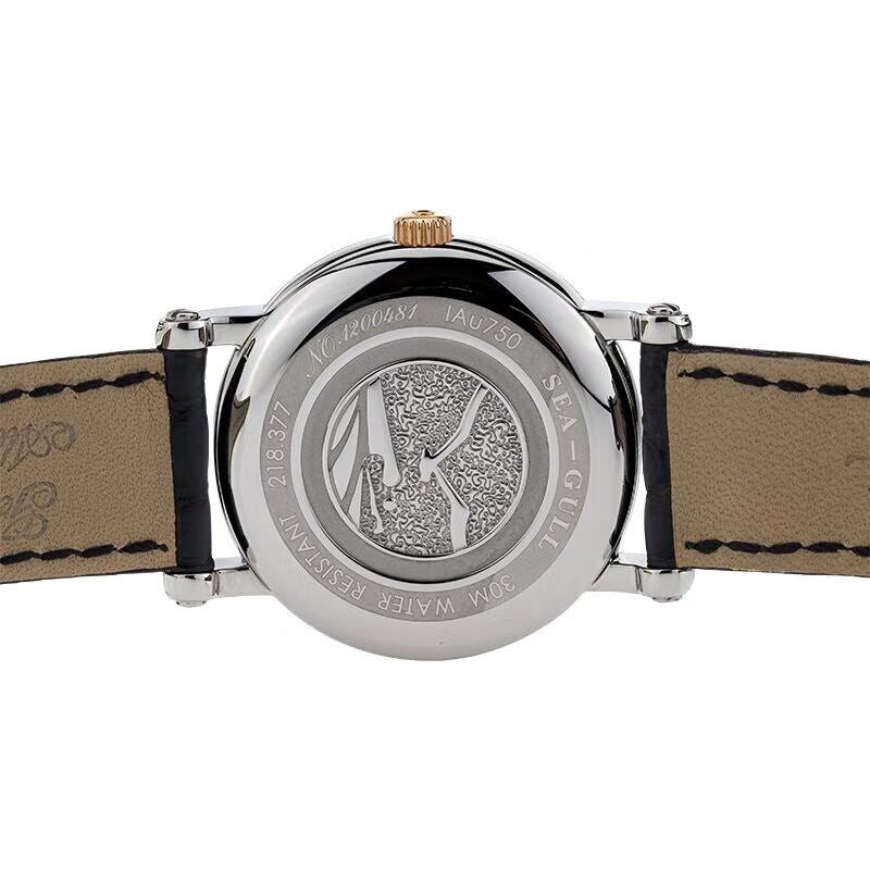 Brand: Sea-Gull (海鷗). Reference: 218.377. [Version: bigger case for men, Roman numeral at 3 o'clock. View other versions→].